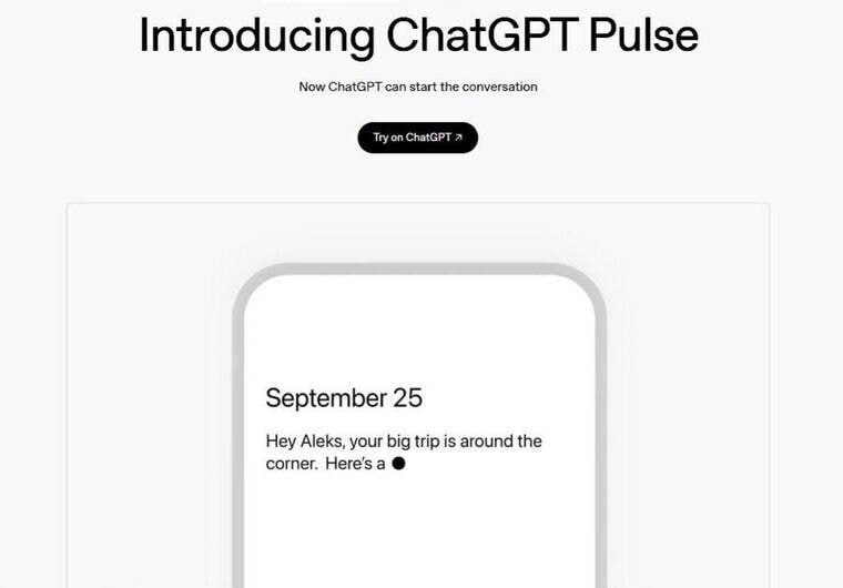 OpenAIは、ChatGPTが自ら能動的に調査し、チャットの内容やフィードバック、カレンダーなどの連携アプリのデータに基づき、パーソナライズされた情報を提供する新機能『ChatGPT Pulse』を発表した。モバイル版のChatGPT Pro(月額200ドル)ユーザーからプレビュー版を利用可能となる。