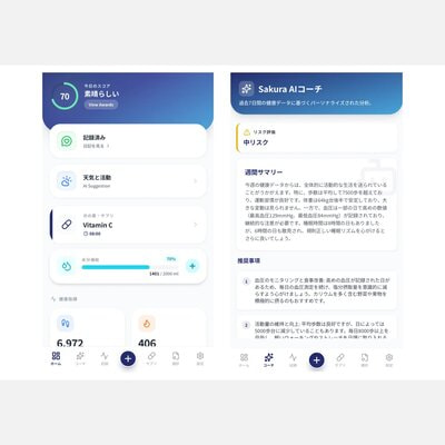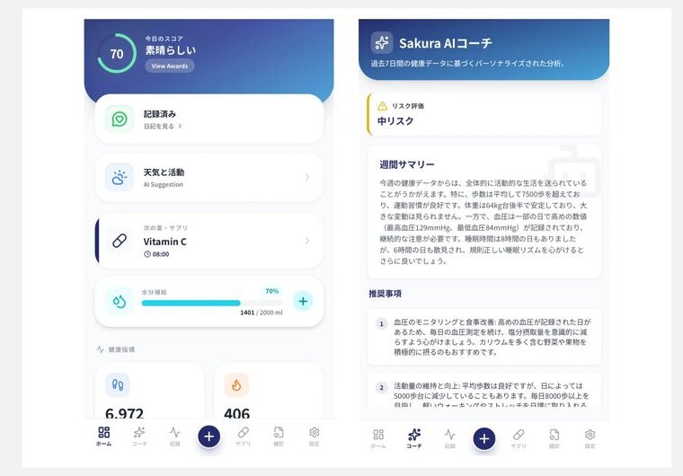 活動量データや健診結果などをAIで分析することで、健康状態の変化や傾向を把握しやすくし、利用者の気づきや行動変容を促すことも可能に。保険会社の健康支援サービスや、医療機関による継続的なフォローなど、幅広い活用シーンを見据えている。